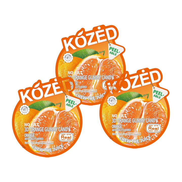 KOZED Orange Juice Gummy Candy, Peelable, 28% Real Fruit Juice, 6 Pack