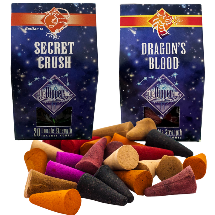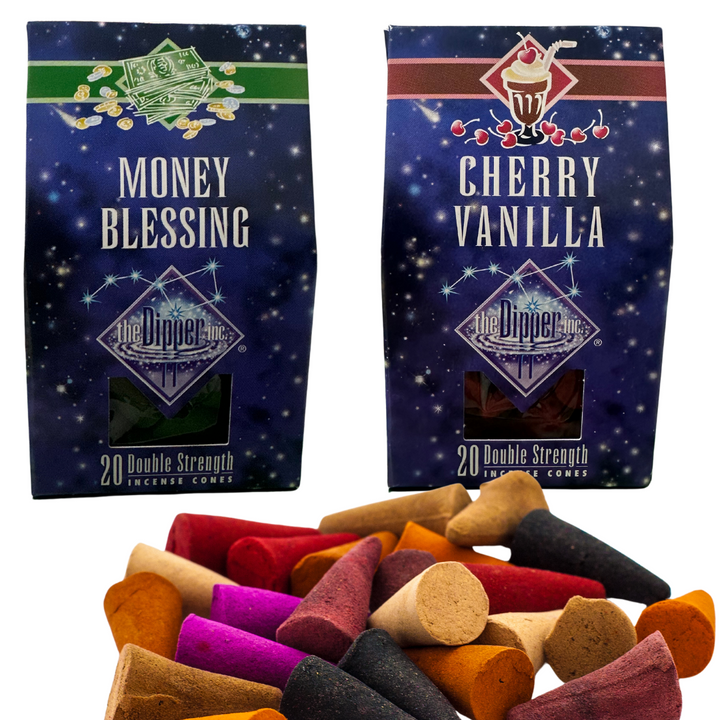Experience the soothing and aromatic scents of The Dipper Premium Incense Cones. This 6 scent variety pack includes 120 pieces and a holder, providing long-lasting and balanced fragrances. At 1 inch in size, each cone burns slowly for a truly immersive and relaxing experience.